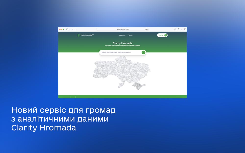 Новий безоплатний сервіс від Clarity Project допомагатиме інвесторам, громадянам та органам місцевого самоврядування отримувати актуальну інформацію про громади в один клік.