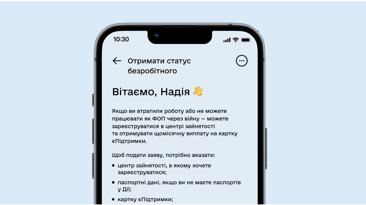 А спрощене отримання статусу безробітного передбачає, що заявникам більше не потрібно завантажувати додаткові документи-підтвердження чи скан-копії, завдяки автоматичній взаємодії між Державним реєстром застрахованих осіб, Державним реєстром фізичних осіб-платників податків та Дією. І все це займає до п’яти хвилин.