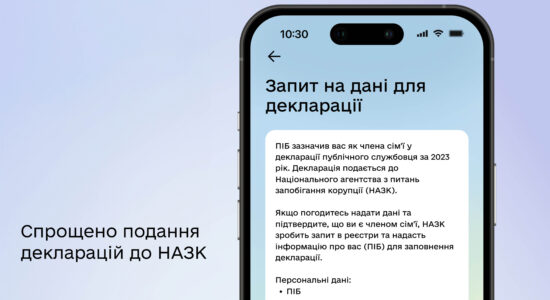 Відтепер члени сімей публічних службовців можуть погодити передачу своїх даних для заповнення декларацій у декілька кліків у застосунку Дія. Для…